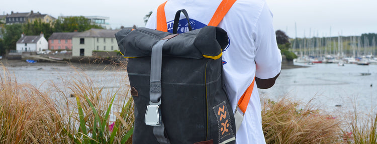 We use local materials as well as ocean-race sails, decommissioned rubber life rafts and airplane parts combining with upcycled or top quality Italian veg tan leather. Mamukko has pioneered the re-use of natural rubber life rafts since 2014. Our handcrafted, small-batch range of sustainable lifestlye bags are produced in our Kinsale workshop.