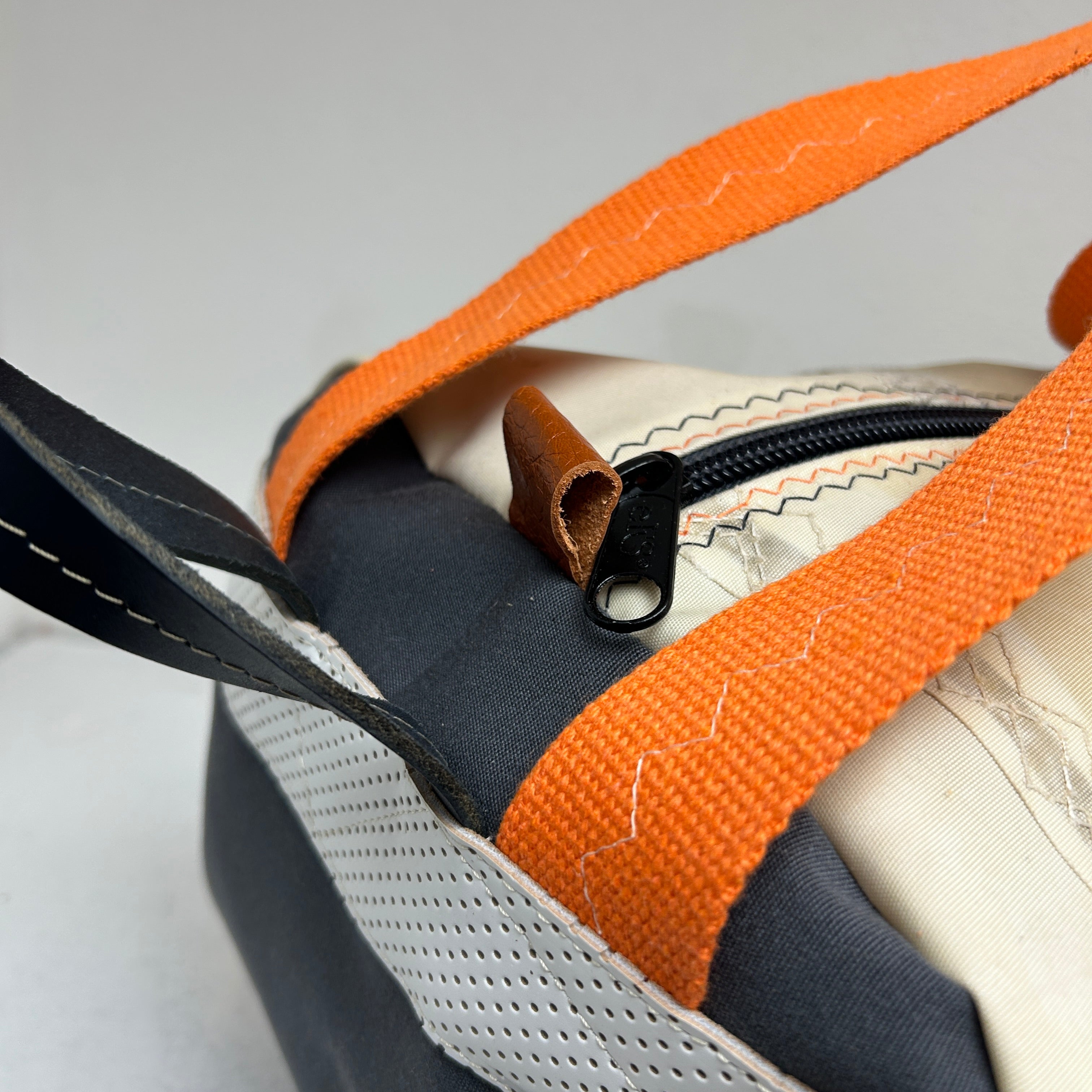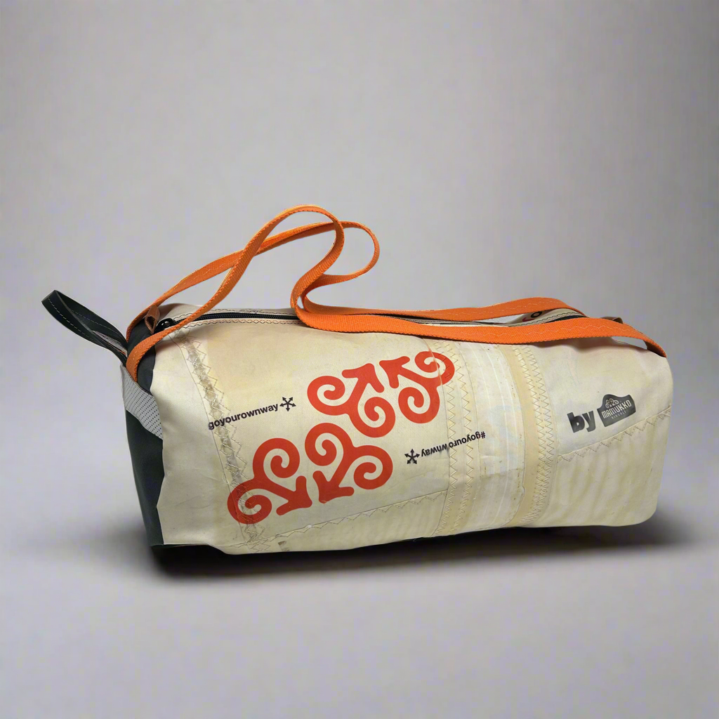 The "Rain Walker" is a testament to Mamukko's dedication to upcycling, as it is meticulously crafted from upcycled awning industry acrylic canvas and medium weight dacron sail. This unique combination of materials showcases our commitment to transforming discarded items into functional and stylish accessories.
